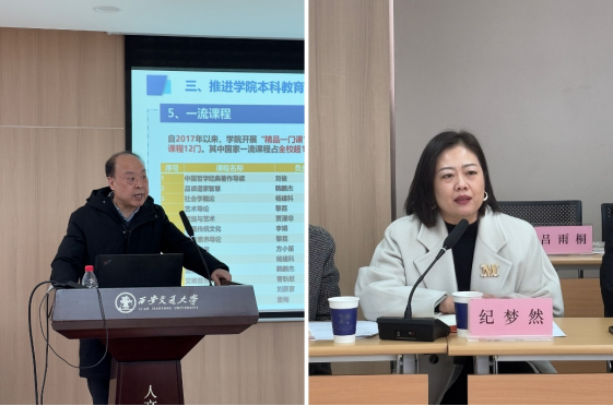 教务处处长王秋旺教授解析了本轮本科教育教学审核评估的背景、目标及入院检查的重要意义。他强调本次检查旨在全面梳理学院本科教育教学成效,发现问题推动整改,为后续学校迎评工作夯实基础,他期望学院以评促建、以评促改,进一步凝练育人特色,持续提升我校人文社科本科人才培养质量。