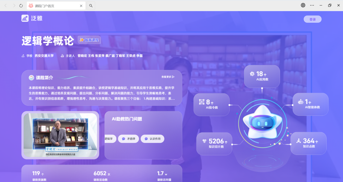 在教育厅的支持与指导下,西安交通大学作为牵头高校,负责“逻辑学概论”课程的改革与建设工作。该课程由我校管晓宏院士作为首席专家,大陆娱乐城