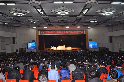 11月20日、21日,西安交大在宪梓堂连续组织开展了两场“思想道德修养与法律基础课”实践活动。20日下午,举办了“雁塔区人民法院刑事审判庭现场审判活动”,21日下午,举办了“我的大学-学生标兵演讲会”。