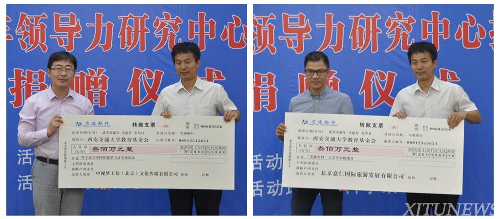 现场,刘英男董事长代表北京奋斗致远文化传媒股份有限公司,谢荣泽总经理代表北京嘉仁国际旅游发展有限公司向丝路青年领导力研究中心总计捐赠600万元人民币。