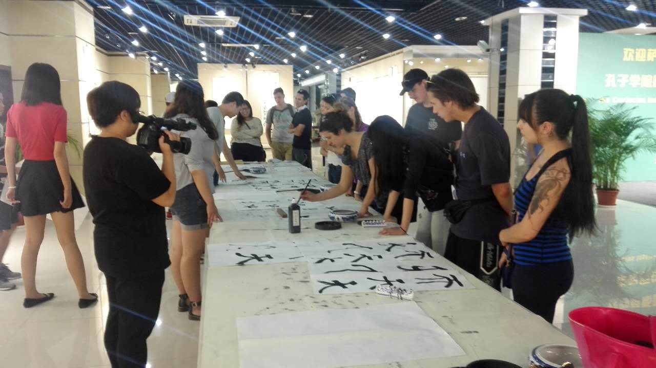 随后,原住民访问团师生们观摩了书法系4位优秀硕士生的现场书法创作,不少原住民学生情不自禁地拿起毛笔,在书法系学生的指导下学写毛笔字。学生们表示这是第一次来到中国,第一次亲眼看到如何书写中国书法,感觉十分有趣也很有意义,对中国文化愈加有探索和求知的兴趣。