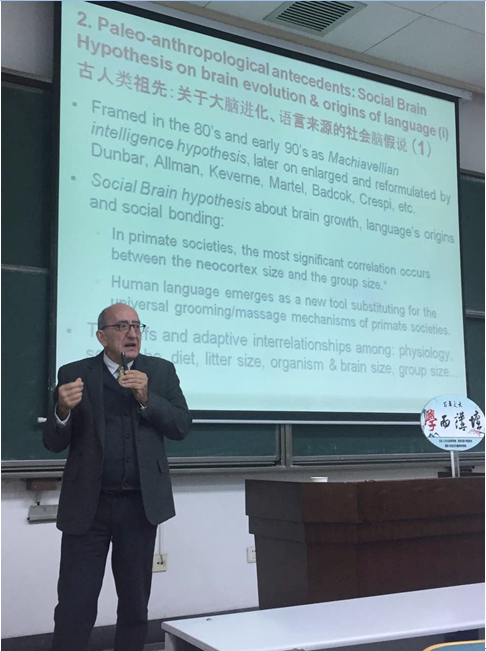 邬焜教授邀请,国际信息科学基金会主席、联合创始人,国际信息研究学会副主席,西班牙阿拉贡健康科学研究中心主任Pedro C. Marijuan教授于11月4号至11月14号顺利完成在我校为期十天的学术访问。访问期间,Marijuan教授面向全校师生举办三次讲座,与信息哲学专业师生进行一次座谈,此外,与国际信息哲学研究中心建立了学术领域的若干合作意向。