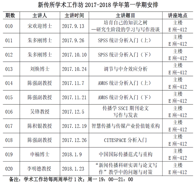 本期工作坊是西安交通大学新闻与传播研究所学术工作坊“研究方法系列”的重要组成部分,旨在增强和提升研究生的问题意识、方法意识和研究意识。据悉,第十四期将于11月7日晚7点在主教楼E座举行,由新闻与新媒体学院陈强副教授主讲 “AMOS统计分析入门”,敬请期待。