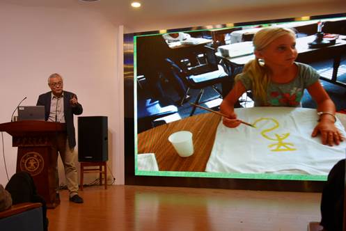 李重老师首先向到场师生介绍了主讲嘉宾,作为教育部重大攻关项目“中国书法文化国际传播的理论与实践研究”的主持人,周斌教授长期以来身体力行地在中国书法的海外传播领域进行探索,他曾在美国纽约大学、南加州大学和联合国总部从事中国书法文化的跨文化访问与研究,更是联合国原秘书长潘基文先生的书法老师。中国书法文化走出去,周斌教授是最有力的实践者与研究者。
