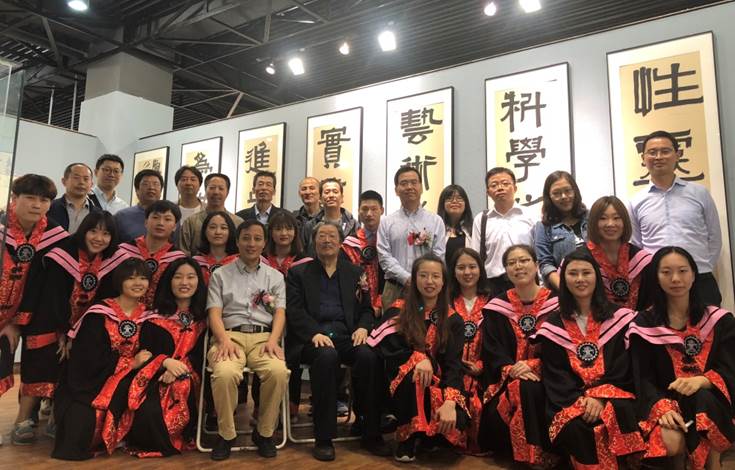 开幕式结束后,到场嘉宾在书法系师生指引下参观了展览并合影留念。