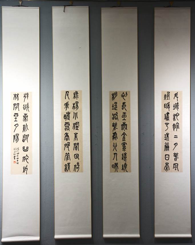 本次展览由书法41班的14名同学在书法系全体教师指导下完成,共包含篆刻作品75件,书法作品62件,包含篆、隶、楷、行、草五种书体,涵盖条幅、条屏、对联、手卷、扇面、册页和中堂等多种书法表现形式。本次参展作品结合古代传统与时代气息,融入本科同学们的个人风格,可谓百花齐放。