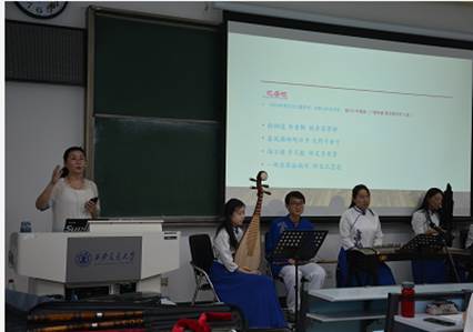 这是本学期《交响音乐赏析》继刘俊峰老师主讲的“认识交响乐队”、文茹老师主讲的“《小提琴协奏曲‘梁祝’》之中西音乐之融合与借鉴”后的第三次全国直播见面课。以“室内乐进课堂”、“大提琴与小提琴的对话”以及本次的“民乐小组合”的乐器现场展示和表演为手段,真实、鲜活地呈献给同学们在场的演奏。身边的同学演奏交响音乐,同龄的学生们聆听交响音乐,迅速拉近了同学们与交响乐之间的距离。同时也渗透“课程思政”的教学理念,对文化自信从音乐的角度进行阐释。