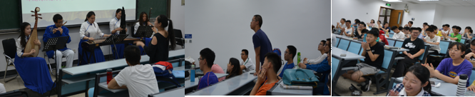 炎炎初夏,周五之夜,从西安交通大学的主楼C座教室里,传出一阵阵悠扬的笛声,并和着古筝、伴着笙鸣,丝竹之音沁人心脾,犹如清风,吹起心头和谐之情、怡悦之意。