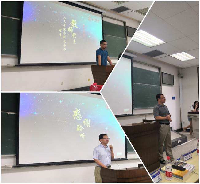 首先,参加此次暑期学校的8位学生代表依次上台讲述了自己在交大校园学习生活的感悟。从相识到相知,C9的各位同学只用了短短8天,跟随老师的思维穿梭于古今中外,一起漫步于千年文明的大街小巷,点点滴滴凝结成深厚的友谊,难忘的记忆。北京大学的谢博闻同学提到:“感谢这些天学校举办的数场精彩讲座,让我们见识了中国传统文化的力量以及文化对我们生活的帮助”;南京大学的王晨松同学说到:“通过这次的活动让我对西安交通大学的人文学科厚度有了更深的了解与认识,与同学们相处的也十分愉快,我作为陕西本地人也感受到了西安这座城市未曾触及的美好角落”;哈尔滨工业大学的董昌其同学与大家分享了自己心中的西安和这次领略到的西安:他认为西安是个充满魅力的城市,对西安交通大学有了新的认识,同时也丰富了自己;复旦大学的陈豪丰同学提到了他在这一周时间里的所见所闻,十分感谢暑期学校中为我们默默付出的老师们。