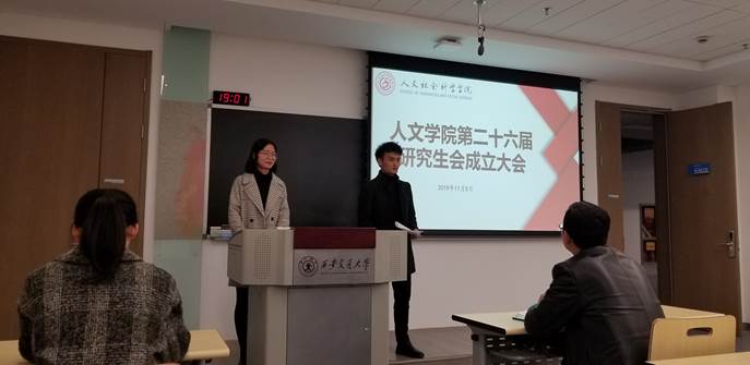 第26届研究生会成立,并宣读人文研会主席团、部长团和干事团的名单。