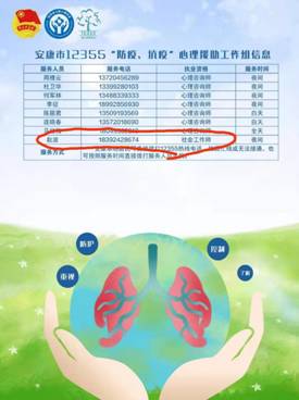 2018级硕士生赵波参加了陕西省12355“防疫、抗疫”心理援助工作组