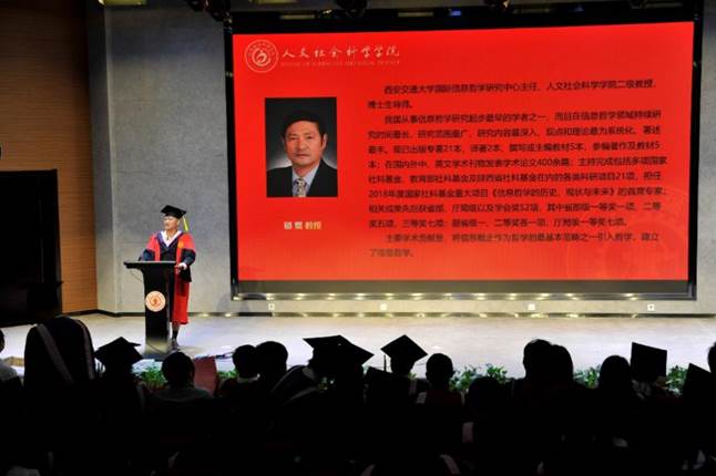 副院长张勇老师主持颁证仪式。李黎明院长、邬焜教授为博士、硕士毕业生拨穗、颁证,并合影。各学科负责人为本科生颁证、拨穗、合影。