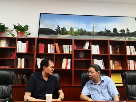 哲学与文化研究所所长马文保教授向彭康之子彭城先生汇报“彭康哲学讲坛”的筹备情况