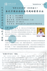 “彭康哲学讲坛”之“科创月”活动——“哲学与当代世界”系列讲座计划举办5次,现已完成4次,分别邀请了中国人民大学郝立新、复旦大学吴晓明、吉林大学贺来和山西大学江怡等四位教授,围绕“当代中国社会价值问题的哲学关注”、“个体、社会、未来——西方哲学家论新冠疫情的影响”、“马克思主义理论中的哲学维度”、“当今时代的思想任务”的主题展开分享。目前已吸引校内外听众3000余人次,他们来自全国多所高校,并与诸位专家进行了高水平的问题交流与讨论。