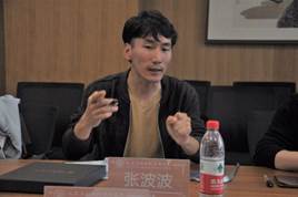 张波波老师来自浙江财经大学,他的研究方向为古希腊哲学,研究重点为柏拉图哲学。他以古希腊哲学家的人生理想为起点展开自己的学术研究介绍。张老师提到,古希腊哲学家认为人类的终极目标是科学无法回答的,这要由哲学和宗教来回答。来自陕西师范大学的刘泉老师以《从识造化到合天人》为题来讲解张载易学的逻辑进路。在他看来张载讲的是“圣人”,张载的易学是“圣学”的阶梯,这些阶梯分为四层,即“先识造化”“容神知化”“与天地参”“天人合一”四层。他们的研究成果分享引起了与会教师的极大兴趣,马文保教授、王嘉新副教授、邱根江副教授与两位学者进行了深入交流。