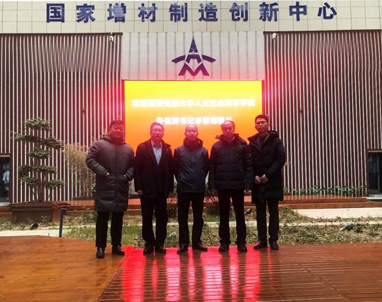 院长李黎明,党委书记许佳辉、艺术系系主任蒋维乐、青年教师陈强一行前往国家增材制造创新中心进行考察调研,洽谈构建校企产学研协同育人平台事宜并签署合作协议。国家增材制造创新中心总经理赵纪元,技术服务部总经理、副总工程师黄纪霖热情接待调研团队。
