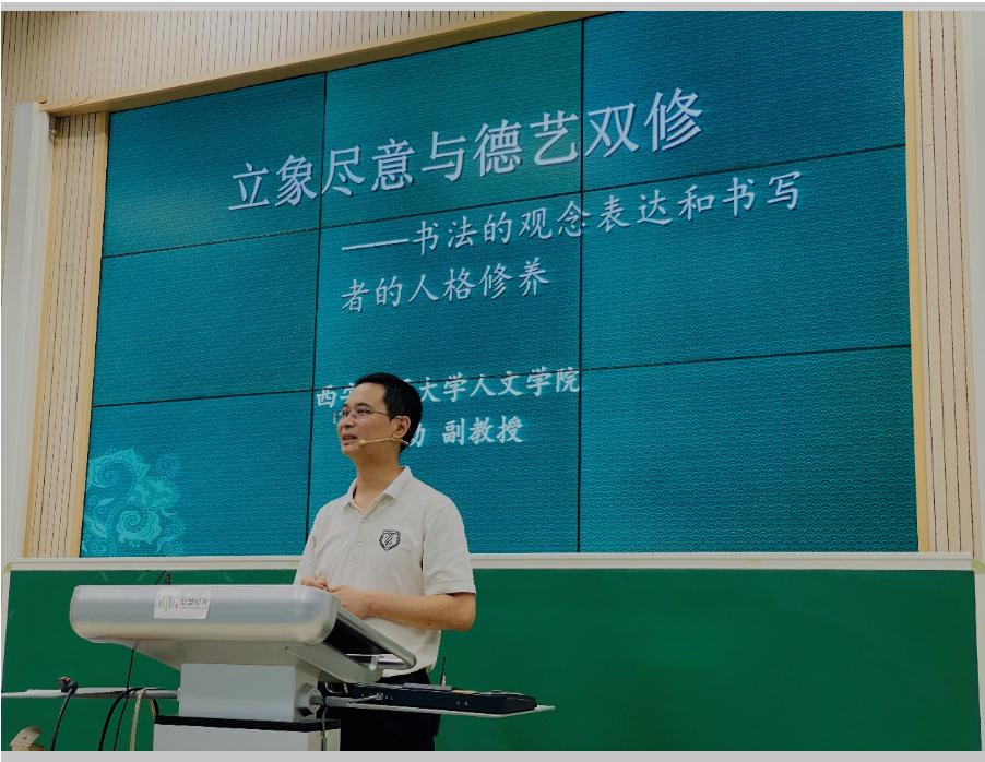 5月31日晚,一堂主题为“立象尽意与德艺双修——书法的观念表达与书写者的人格修养”的直播课在西安交通大学开讲,这是该校通识类核心课《中国传统文化》课在智慧树平台的第四次全国直播见面课,由中国书法系王劲副教授主讲。