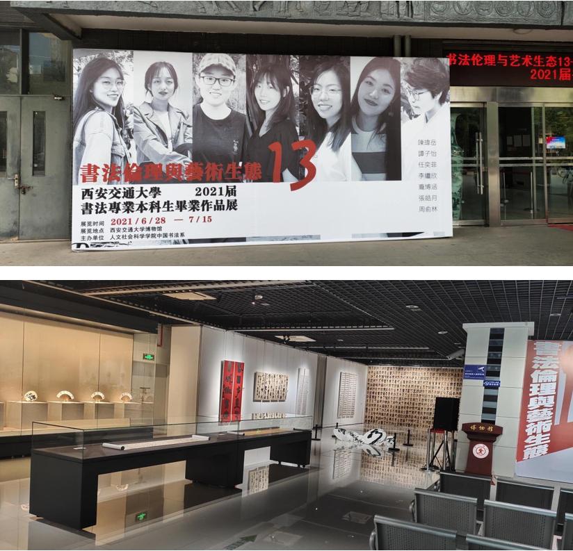 中国书法系主办的“书法伦理与艺术生态13”——西安交通大学2021届书法专业本科生毕业作品展于西安交通大学博物馆一楼展厅开幕。