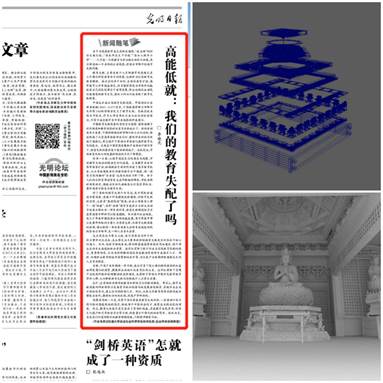 同蔡萌一样,学院教师正主动将“触角”伸向社会发展的各个层面,立足新时代,回应新需求,以聪明才智贡献国家,以开拓进取服务社会。社会学系青年教师李晓光在《光明日报》发表《高能低就 我们的教育失配了吗》一文,针对就业市场中“教育失配”现象提出切实建议。艺术系贾濯非、欧阳振宇团队的“流散海外中国艺术数字化工程”项目,将三维技术应用于流散海外中国艺术品的定位调查、数字化归档及历史还原的研究中,并支撑国际范围的文化教育、学术研究基础数据库的孵化应用。学院教师深耕就业、乡村振兴、民族共同体等涉及人民福祉、文化建设、社会治理的重要领域,积极承担国家和地方经济社会发展重大课题。