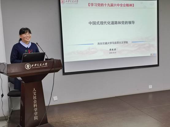 举办学习十九届六中全会精神专题讲座,邀请马克思主义学院樊晓燕副教授,作题为“中国式现代化道路和党的领导”的专题讲座,学院全体教师党员和学生党员干部参加学习。