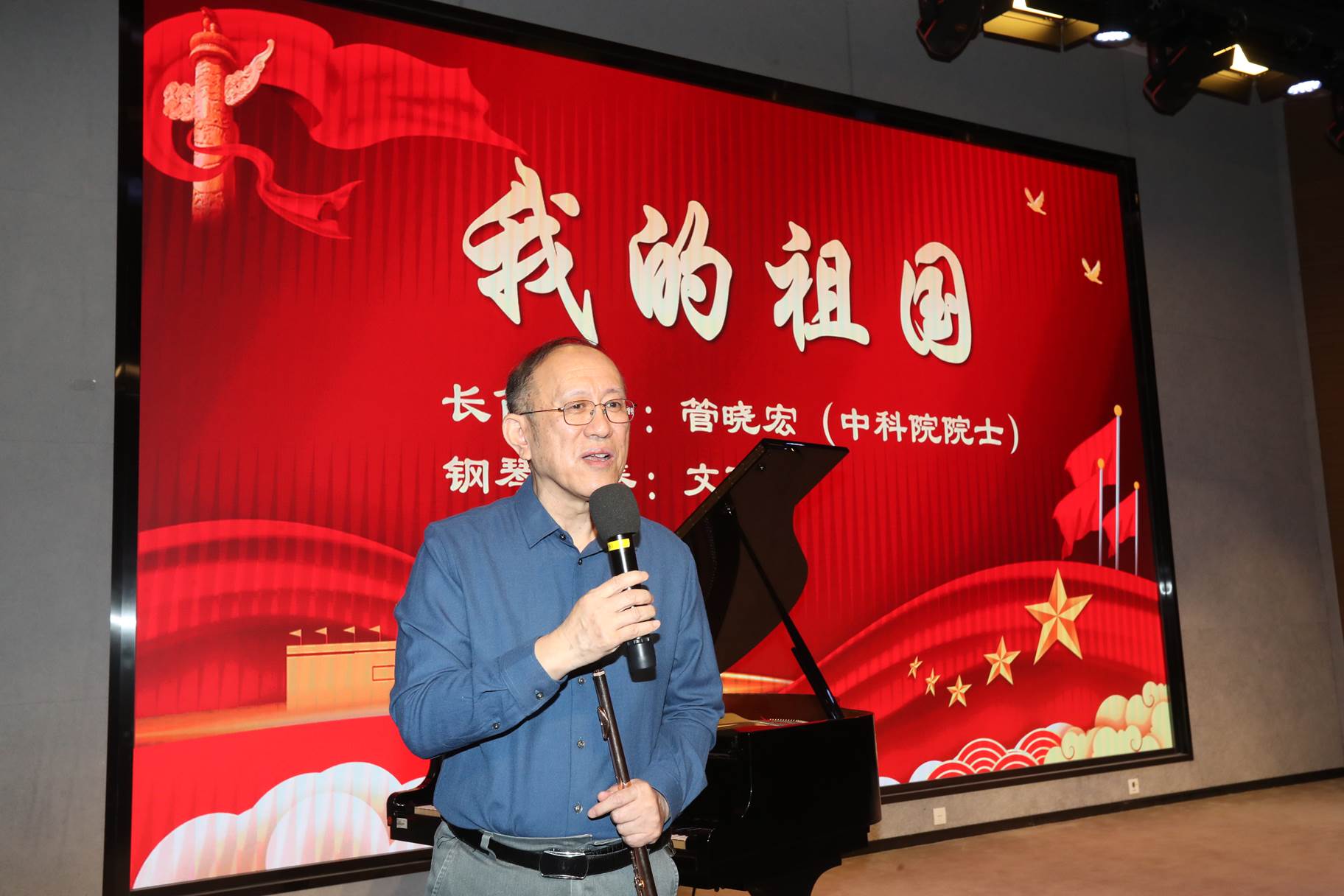 中国科学院院士管晓宏院士管院士是音乐的爱好者,也一直着力于艺术与科学的融合,在与文茹老师合奏完一曲《我的祖国》之后。他说:“西安交大近十年来一直在推进艺术与科学交汇的课题研究与成果普及,目前不但有面对普通民众和大学生的版本,还有针对中学生和小学生的。此项研究收到了中国科协、陕西省科协的全力支持。艺术与科学的交汇最早由钱学森学长倡导与推动,我们一定要把他的期望落到实处,把五育并举落到实处,为我们学校在双一流建设中取得更大的成就。”