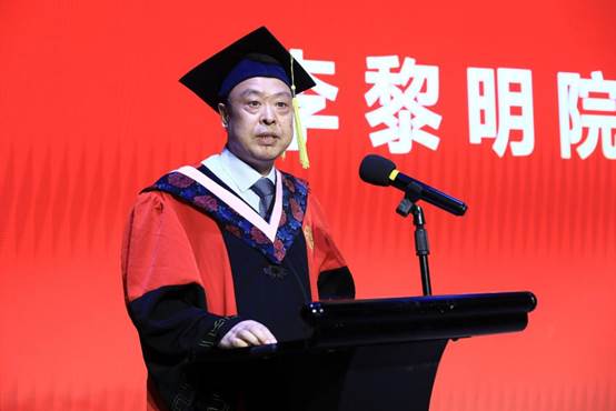 最后,李黎明院长上台致辞,祝贺大家取得优秀的成绩,奋斗过的大家是最酷的。李院长对大家提出三点殷切的期望:一是矢志奋斗,立志高远,“奋斗是青春最亮丽的底色”,用拼搏装点青春生活;二是担当尽责,报效祖国,“一代人有一代人的长征”,用属于自己的方式、节奏、力度诠释青春;三是不忘初心、从容有度,站在时代潮流中不忘最初的坚持,不忘做人的韧性与勇气。“希望同学们牢记总书记的嘱托,紧跟时代步伐,做一个不惑、不惧、不忧,顶天立地的人,二十五年后我们再相会!”
