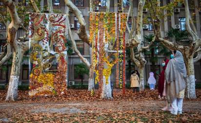 课程充分尊重同学们自主创意。早在几周前,任课老师就提醒同学们关注梧桐节,引导同学们以艺术视角去观察秋叶、感悟秋天,开始征集初始创意。在提交的120份创意文稿中,老师们遴选了其中12个艺术创意方式,并分析梧桐节会场空间特征和实施技术条件,给出深化、优化意见,最终由同学们票选、决定共同实施上述2个方案。