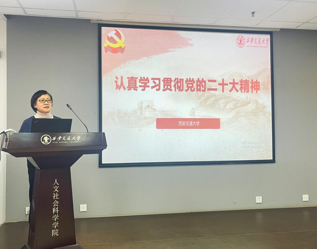 张定红传达了《中共西安交通大学委员会关于深入学习宣传贯彻党的二十大精神的通知》要求,并结合学校工作实际,对学习宣传贯彻党的二十大精神提出具体要求:一要紧紧围绕习近平总书记对广大教师提出的“四有”好老师、“四个引路人”和“四个相统一”等要求,引领广大教师争做新时代青年的好老师和“大先生”;二要落实好立德树人根本任务,把习近平总书记关于青年学生工作的系列重要论述同党的二十大精神结合起来,引导学生努力成为堪当民族复兴大任的时代新人;三要深刻认识到建设世界重要人才中心和创新高地的重要性、必要性和紧迫性,引导教师坚持“四个面向”,发挥学科优势和特色开展科学研究,主动研究阐释党的二十大报告中的新提法、新论断、新要求;四要发挥好专业特长,加强学科交叉,为推动社会主义文化繁荣发展,增强中华文明的传播力和影响力,引领校园文化作出应有的贡献。