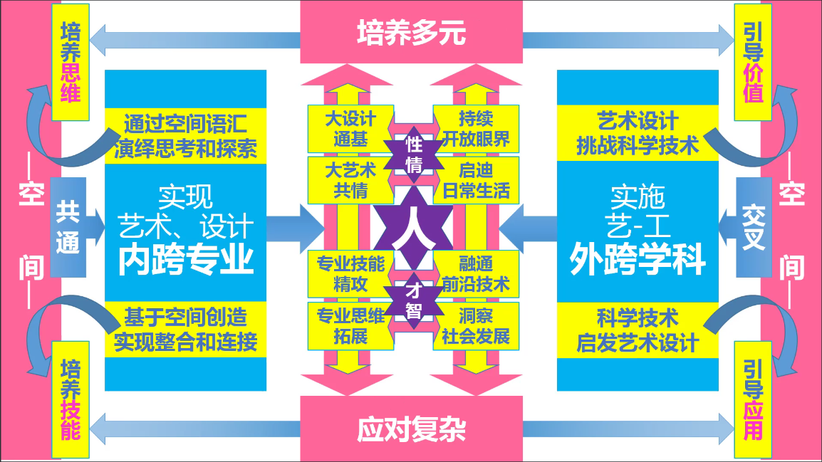 刘清清老师在充分调研国内外知名高校培养方案的基础上结合当下社会、技术发展新特点,从更加宏观、务虚的角度,针对如何更好的凝聚三个专业方向、如何培养符合时代需求的本科生、以及设计与前沿技术、交叉学科、设计学科内部融合等多个方面提出了意见和思考。刘老师认为可以通过“空间”这一概念来统一三个专业方向。周利明老师认为在“空间”的基础上介意进一步突出理念的瞻性,并将其与国家的未来发展相结合,可以重点考虑“虚拟”的概念,以面向元宇宙、大数据、人工智能的社会发展趋势。杨眉老师指出,通过这次的工作会议,和培养方案修改专班各位老师的汇报很有收获,认为我们应该利用这次机会整合三个专业方向各自的教学研究优势形成合力,共同推动更有成效的国家一流专业建设,通过这一次会议也明显看到大家已经达成了这点共识,相信未来我们三个方向能够更好地推动环境艺术设计专业的发展。