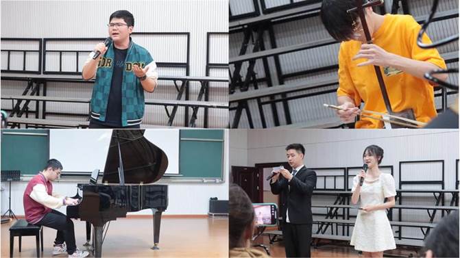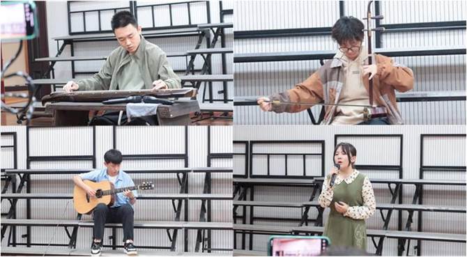 张灵同学甜蜜的歌声像温热的奶茶,一首吉他弹唱《暖暖》为音乐会中的每个人都带来了幸福的感觉,与之后陈滢睿同学带来的《如果这都不算爱》、刘高宇同学带来的《风衣》像是冰火两重天,令听众为之动容。许芷萱,魏子乐同学带来的吉他弹唱《如愿》,如置身在百花盛放之处,歌唱着不断传承的愿望,表达了新一代青年必将为中华民族而奋斗的坚定决心。