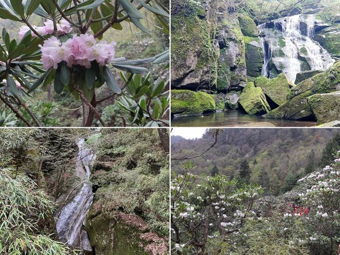 缓缓进入公园,大家被眼前满山遍野、团花锦簇、似海如潮的杜鹃花吸引, 木王山园区内杜鹃分布面积达2万余亩,品种达12种之多,最大的树龄达270余年,是西北连片面积最大的美容杜鹃分布区,有“千山杜鹃”之美誉。