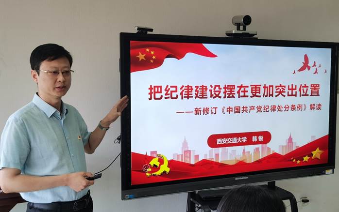 会上,马克思主义学院韩锐教授为在场党员干部带来了一场题为《把纪律摆在更加突出位置》的专题报告。韩教授以深厚的理论功底,全面系统地解读了《中国共产党纪律处分条例》的修订意义、内容和价值。他通过引用生动案例,形象地阐述了党纪的重要性和严肃性,并强调在新时代背景下,要自觉将纪律要求内化于心、外化于行,提升认识,以知促干,在中国式现代化建设中做学纪知纪明纪守纪的表率。
