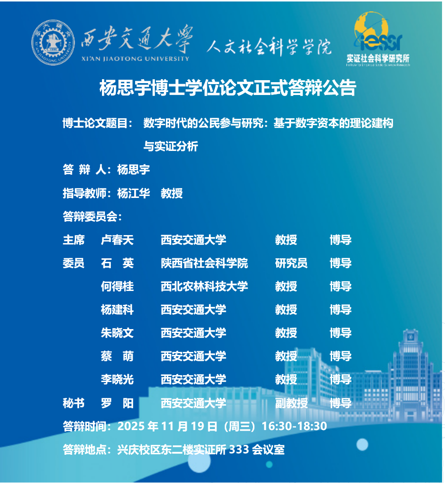 杨思宇博士学位论文正式答辩公告